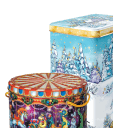 - Жестяные коробки. Элегантные и долговечные упаковки из жести станут отличным подарком, который сохранит свою привлекательность даже после того, как конфеты будут съедены. Яркие, красочные изображения новогодней тематики делают такие коробки прекрасным украшением праздничного стола.